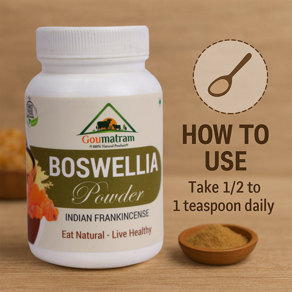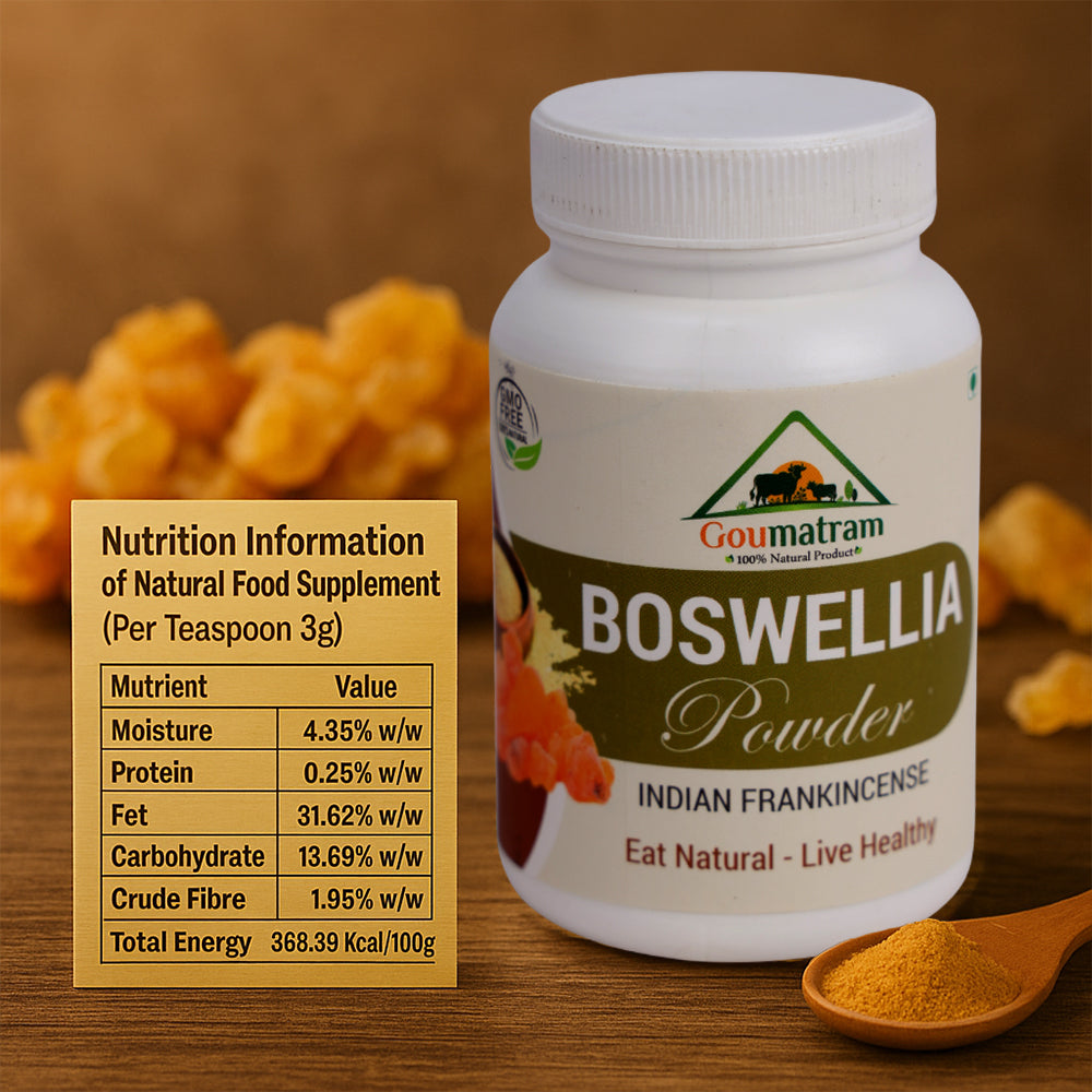 A traditional Ayurvedic remedy made from the resin of the Boswellia serrata tree, also known as Indian Frankincense. Rich in natural anti-inflammatory compounds, Boswellia Powder supports joint health, reduces stiffness, and promotes flexibility. It is also beneficial for respiratory wellness, digestion, and overall immune support. A natural choice for maintaining mobility and long-term wellness.