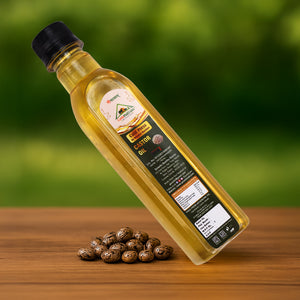A premium, 100% natural oil extracted from castor seeds using traditional wooden cold-pressing methods. Rich in ricinoleic acid and essential fatty acids, this oil helps nourish skin, strengthen hair, promote hair growth, and relieve dryness. Free from chemicals and heat, it retains maximum nutrients and natural properties, making it ideal for holistic hair care, skincare, and therapeutic uses.