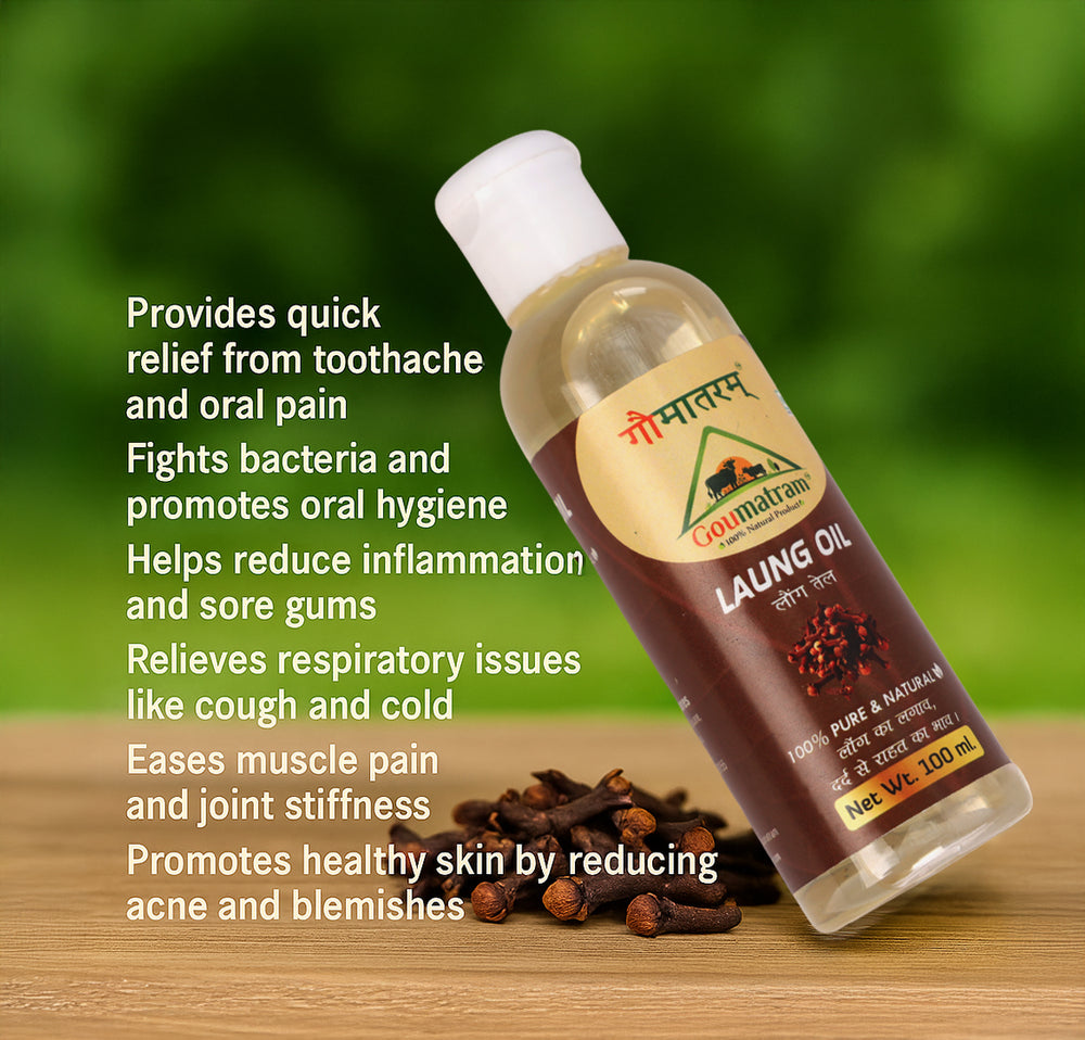 A natural essential oil extracted from premium clove (Laung) buds, rich in antioxidants and eugenol. Laung Oil helps relieve toothache, reduce inflammation, improve digestion, and promote overall wellness. Ideal for aromatherapy, topical application, and natural remedies, it delivers the traditional therapeutic benefits of clove in a concentrated and effective form.