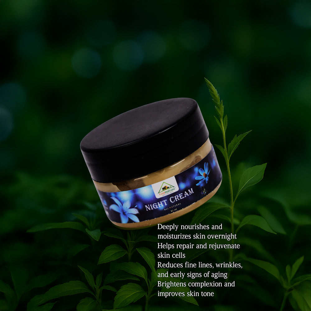 A nourishing and rejuvenating cream designed for overnight skin repair. Enriched with natural moisturizers, antioxidants, and vitamins, Night Cream helps hydrate the skin, reduce fine lines, improve elasticity, and restore a healthy, radiant complexion. Ideal for daily use, it works while you sleep to rejuvenate, protect, and promote overall skin wellness naturally.