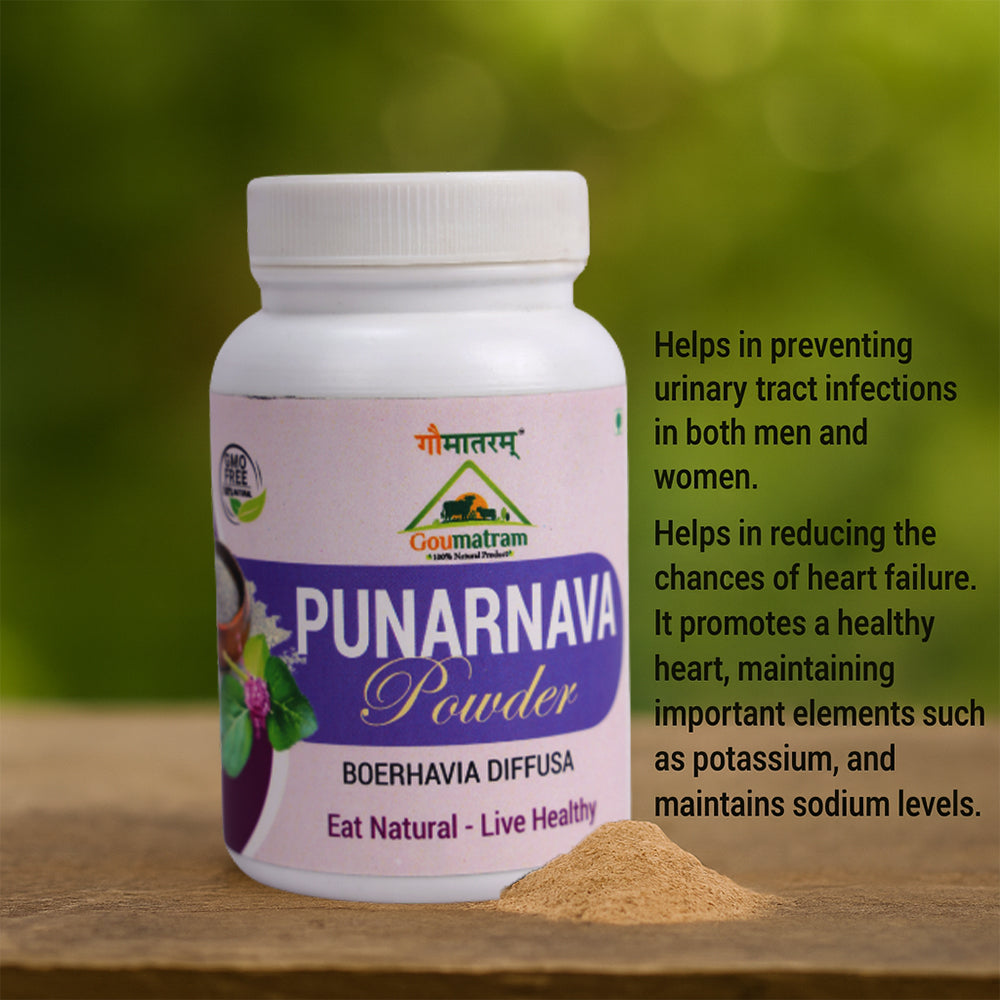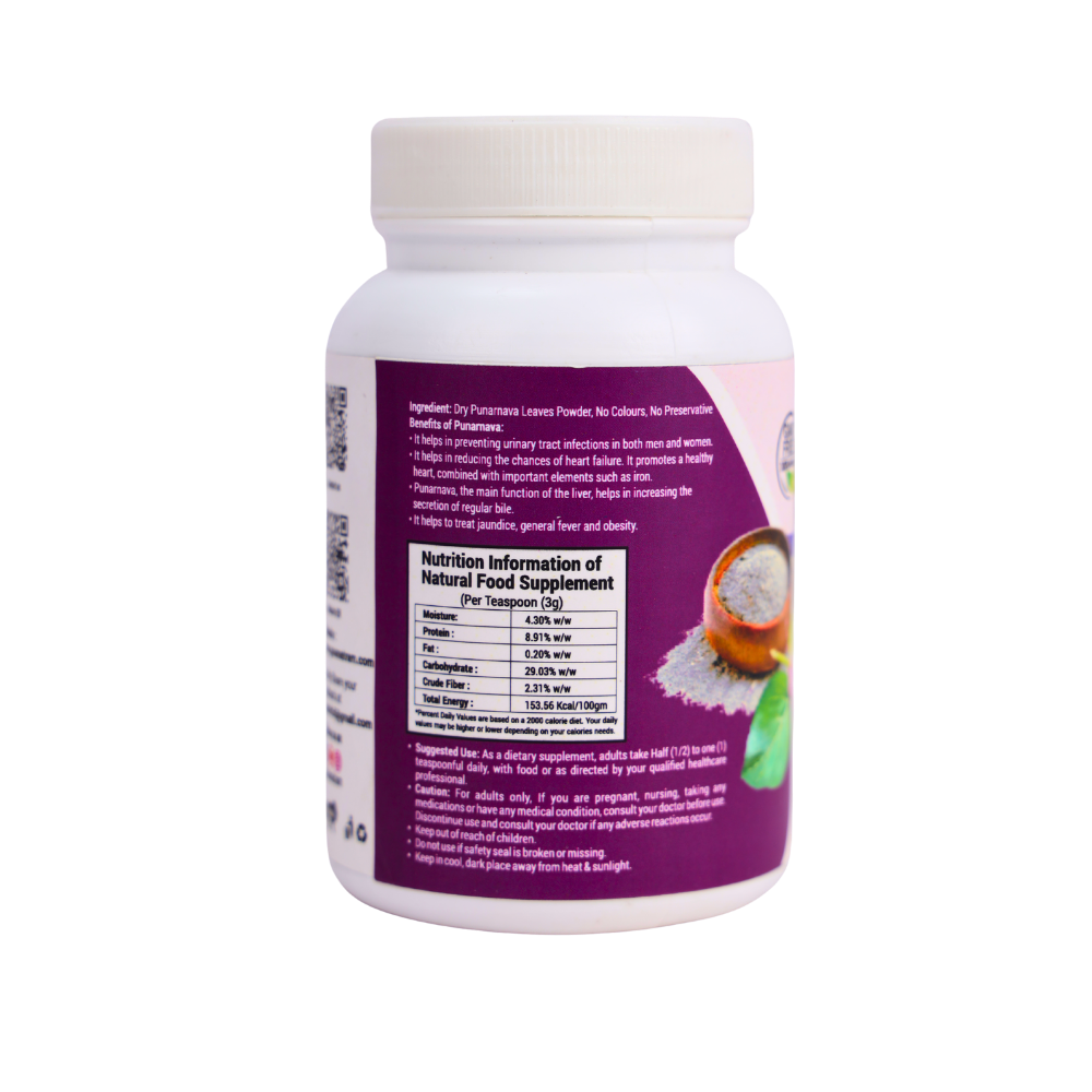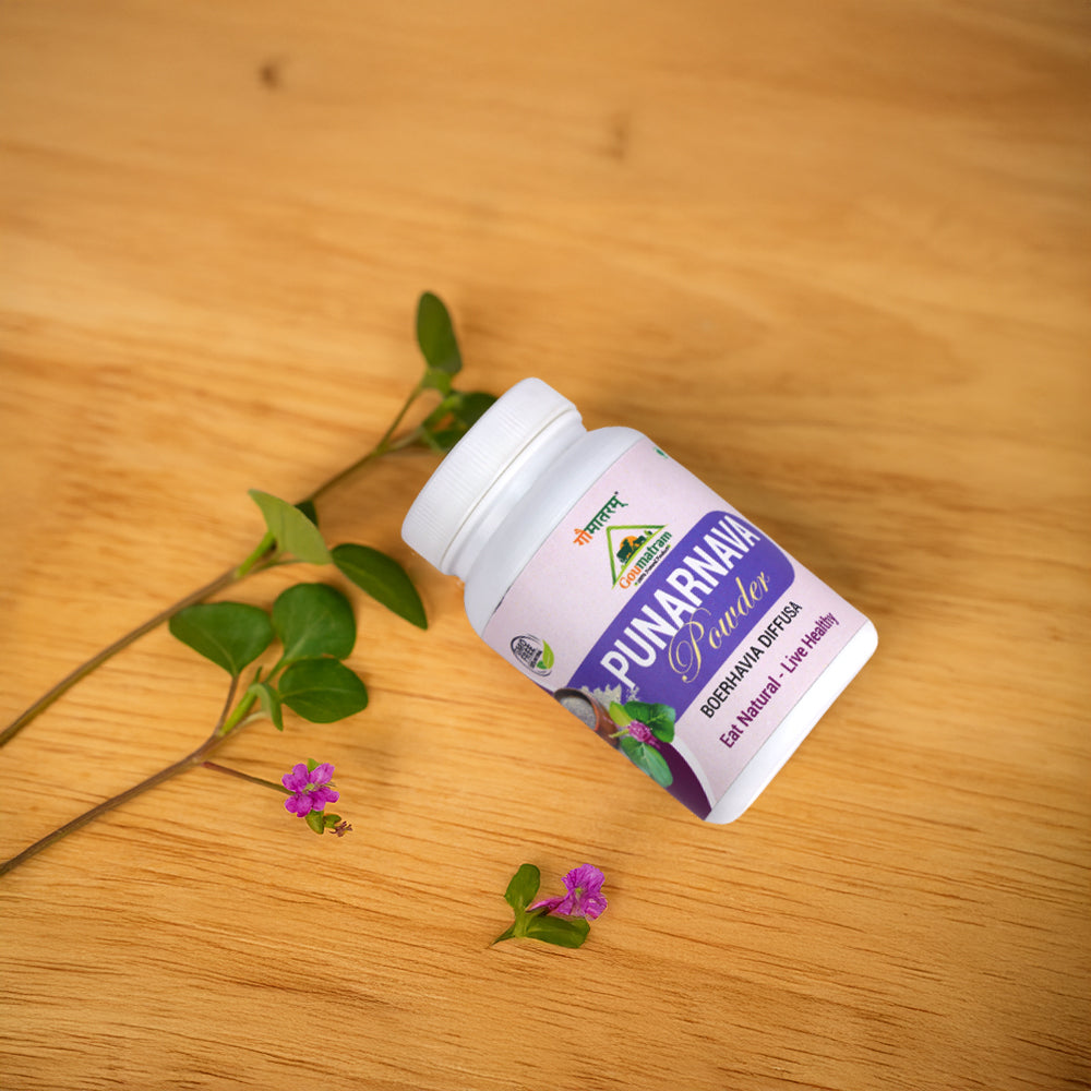 A potent Ayurvedic herbal supplement made from the roots of Boerhavia diffusa (Punarnava), known for its rejuvenating and detoxifying properties. Punarnava Powder supports kidney and liver health, aids digestion, reduces water retention, and promotes overall wellness. Rich in antioxidants and bioactive compounds, it helps maintain internal balance, boosts immunity, and enhances vitality naturally.