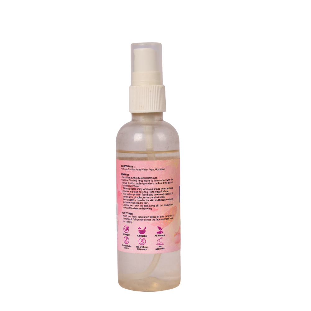 A natural and refreshing herbal extract made from pure rose petals. Known for its soothing, cooling, and hydrating properties, Rose Water helps calm irritated skin, maintain pH balance, and provide a natural glow. It can be used as a facial toner, a skin refresher, or in DIY beauty treatments. With its pleasant floral fragrance, Rose Water is ideal for daily skincare and holistic wellness.