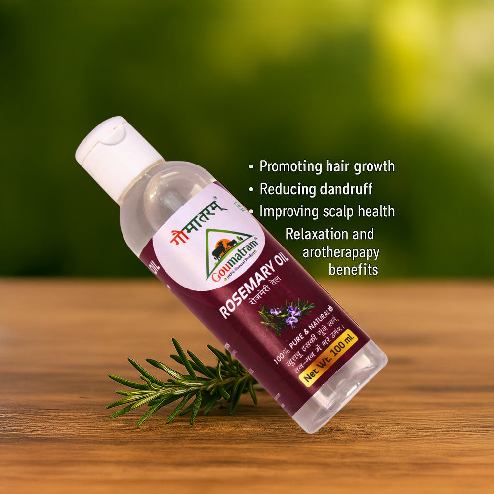 A premium essential oil extracted from fresh rosemary leaves, known for its invigorating aroma and therapeutic properties. Rosemary Oil helps stimulate hair growth, improve scalp health, enhance memory and concentration,