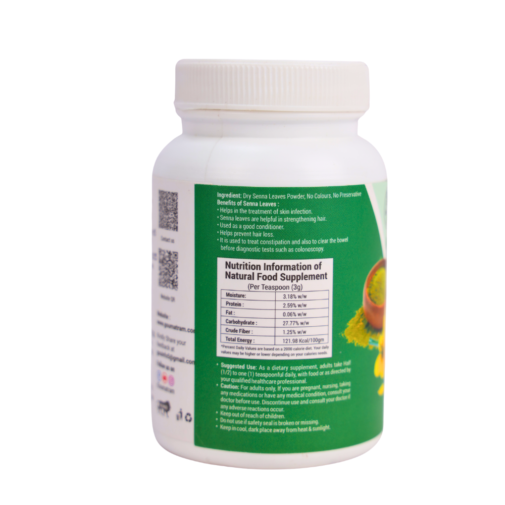 A natural herbal supplement made from the dried leaves of the Senna plant, traditionally used as a gentle and effective laxative. Senna Powder helps support healthy bowel movements, relieve occasional constipation, and promote digestive wellness. Rich in natural compounds that stimulate intestinal activity, it is an ideal choice for maintaining regularity and overall digestive health naturally.