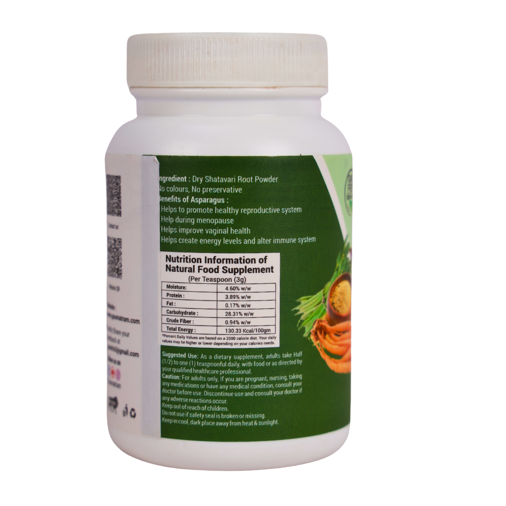 A natural Ayurvedic herbal supplement made from Asparagus racemosus (Shatavari), renowned for its rejuvenating and adaptogenic properties. Shatavari Powder supports women’s reproductive health, balances hormones, boosts immunity, and enhances vitality. Rich in antioxidants and bioactive compounds, it also aids digestion, promotes overall wellness, and helps maintain strength and stamina naturally.