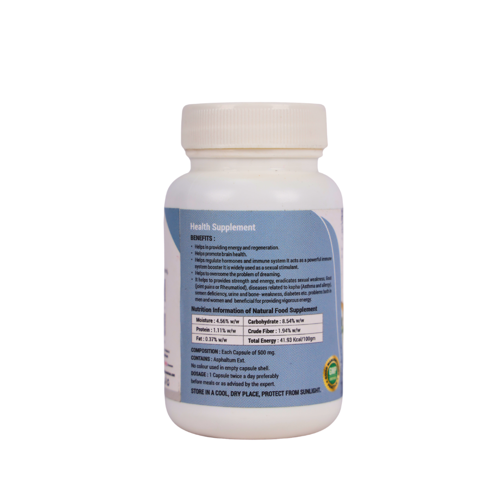 A natural Ayurvedic supplement made from purified Shilajit, a mineral-rich resin from the Himalayas. Shilajit Capsules help boost energy, enhance stamina, support cognitive function, and improve overall vitality. Rich in fulvic acid and essential minerals, they also strengthen immunity, aid in anti-aging, and promote holistic wellness conveniently. A daily dose of Shilajit Capsules helps maintain natural balance and endurance in the body.