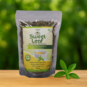 A natural herbal sweetener derived from the leaves of the Stevia rebaudiana plant. Sweet Leaf provides a zero-calorie, sugar-free alternative for managing blood sugar levels and supporting healthy weight. Perfect for adding natural sweetness to beverages, desserts, and daily cooking, it ensures a healthier lifestyle without compromising on taste. Gentle on the body and naturally sweet, Sweet Leaf is ideal for everyday use.