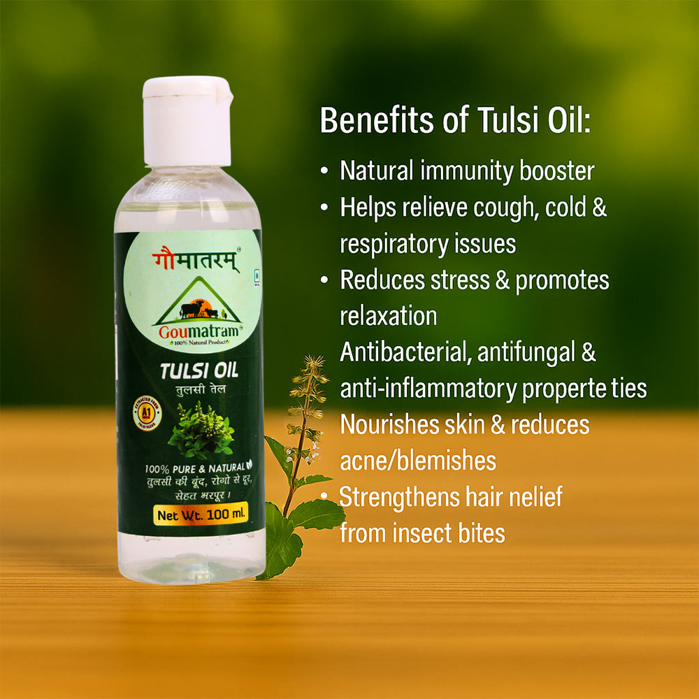 A natural essential oil extracted from fresh Tulsi (Holy Basil) leaves, known for its healing and therapeutic properties. Tulsi Oil helps boost immunity, relieve stress, purify the air, and promote