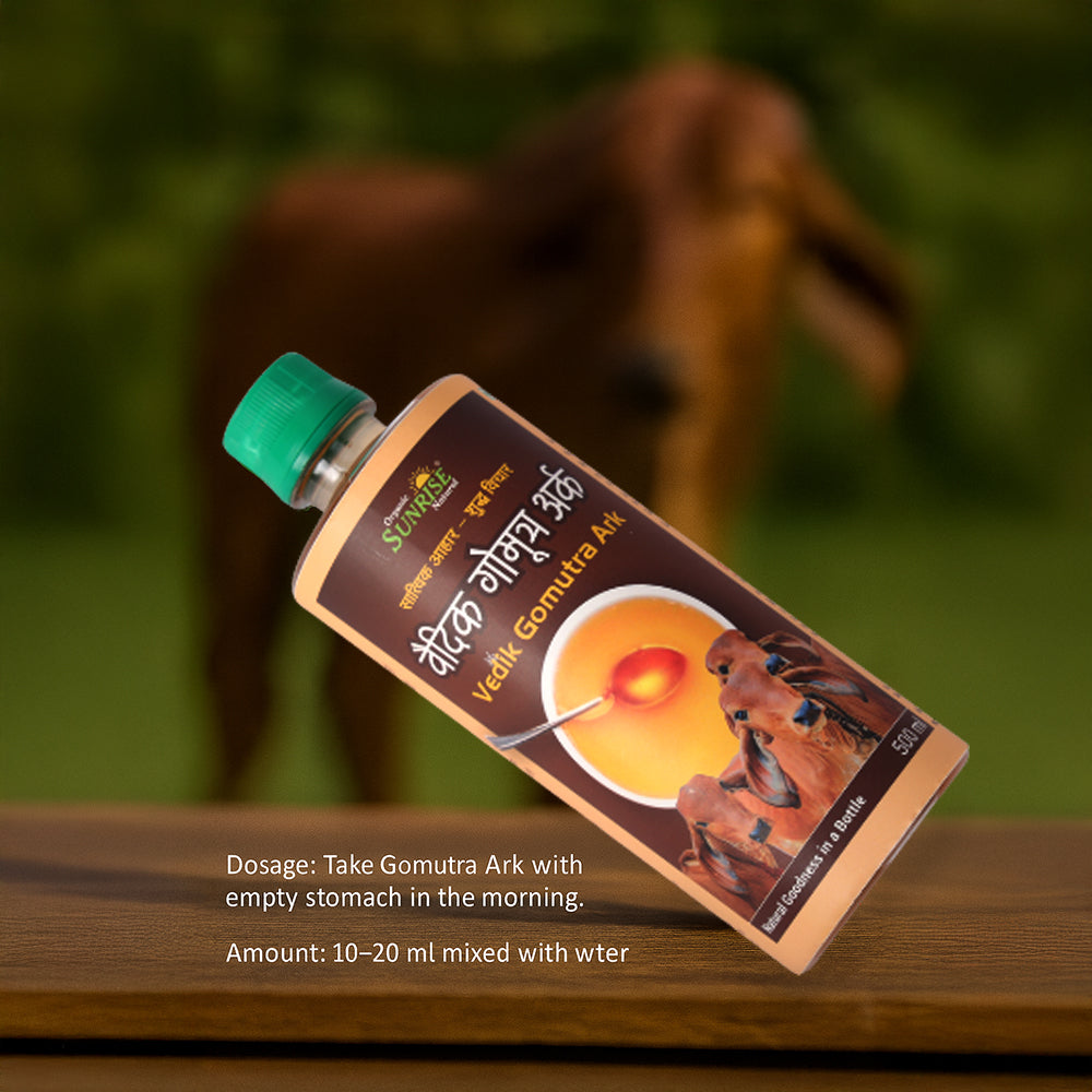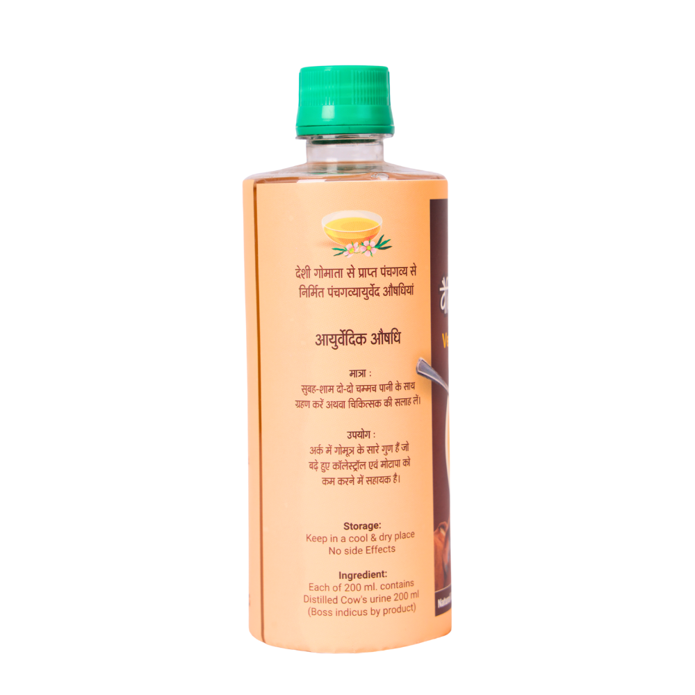 A traditional Ayurvedic tonic made from pure cow urine (Gomutra), known for its detoxifying and immunity-boosting properties. Vedik Gomutra Ark helps purify the blood, support digestive health, enhance metabolism, and promote overall wellness. Rich in natural bioactive compounds, it is a holistic remedy for maintaining internal balance, improving vitality, and supporting general health naturally.