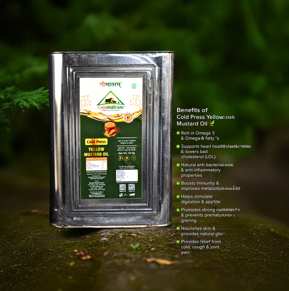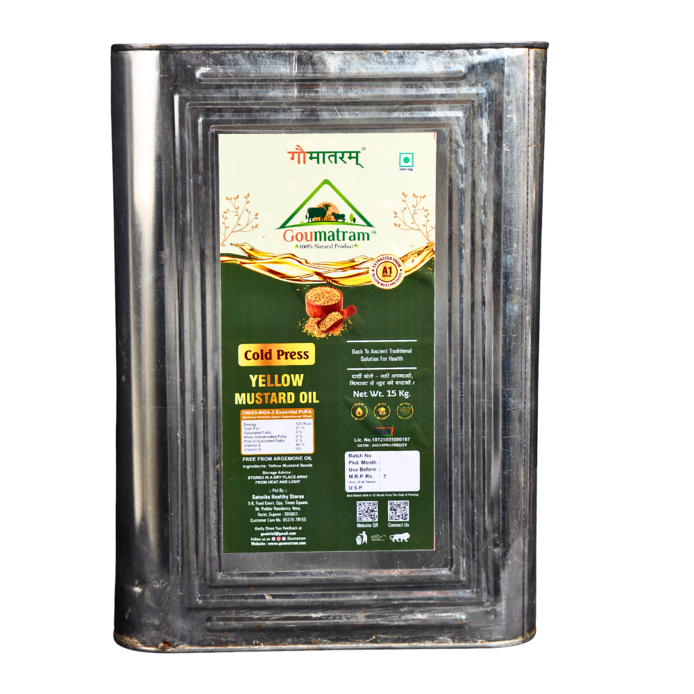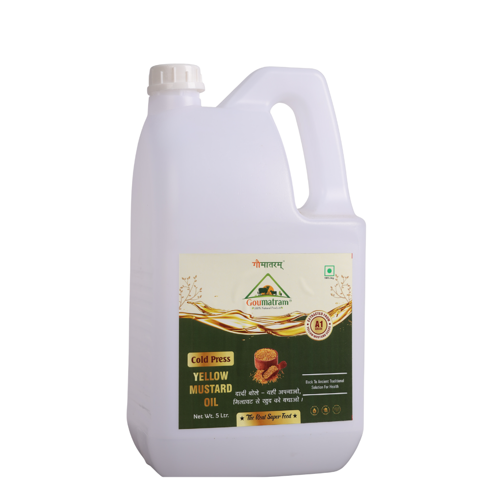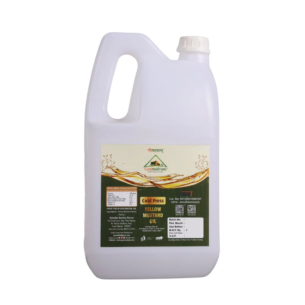 A premium, cold-pressed oil extracted from high-quality yellow mustard seeds, rich in essential fatty acids and antioxidants. Yellow Mustard Oil is ideal for cooking, frying, and traditional culinary uses, adding natural flavor and nutrition to your meals. This 5-liter bottle provides a long-lasting, chemical-free supply of healthy oil for daily use.